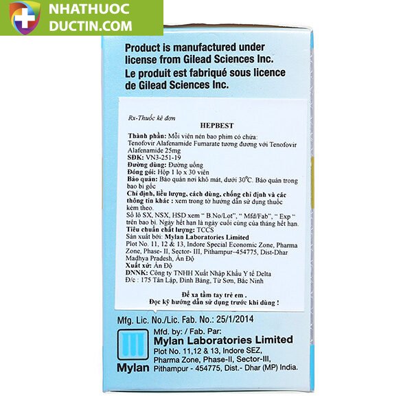 Thuốc Hepbest 25mg (Chai 30 viên) giúp điều trị viêm gan B