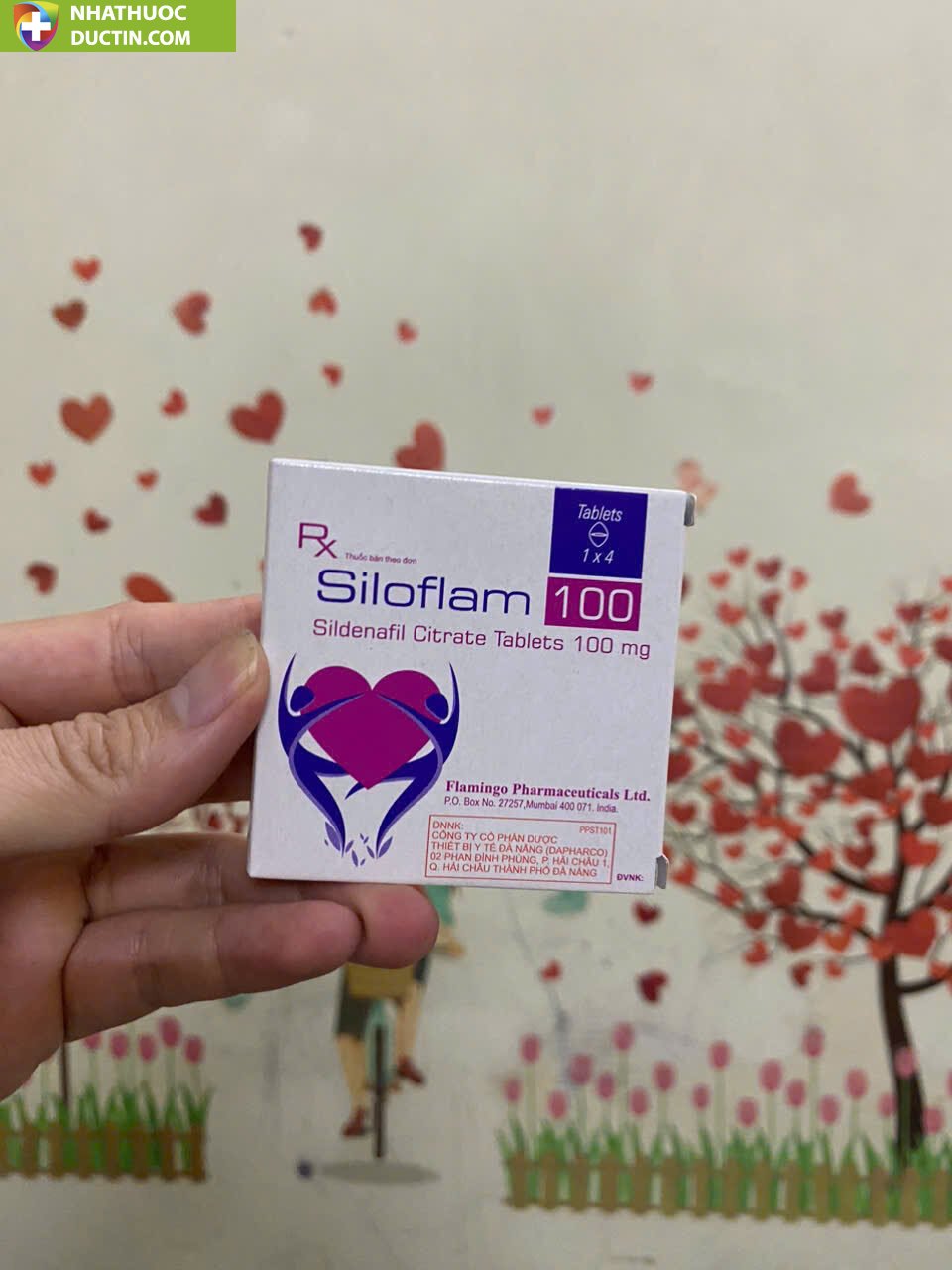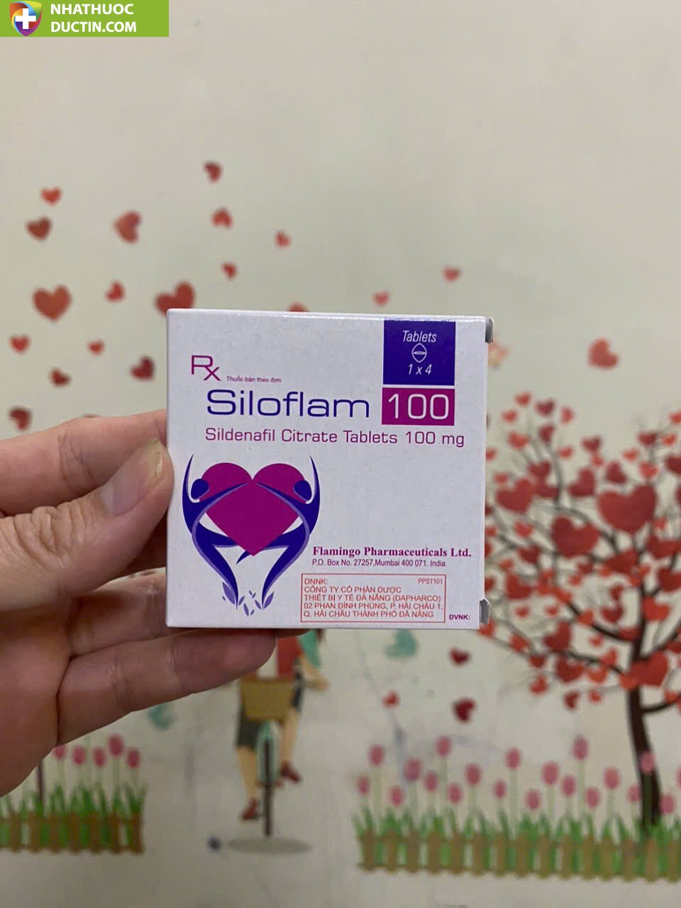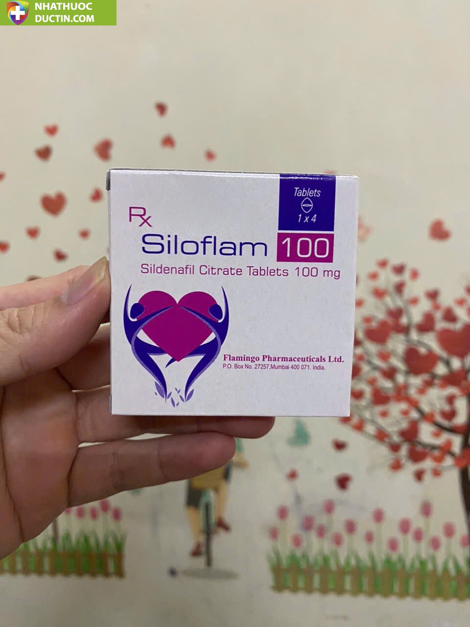 Thuốc SILOFLAM 100MG FLAMINGO 1X4 do Công ty Flamingo Pharmaceuticals Ltd., Ấn Độ sản xuất có thành phần hoạt chất là Sildenafil 100 mg với công dụng điều trị các tình trạng rối loạn cương dương ở nam giới trưởng thành, là tình trạng không có khả năng đạt được hoặc duy trì cương cứng đủ để thỏa mãn hoạt động tình dục.
