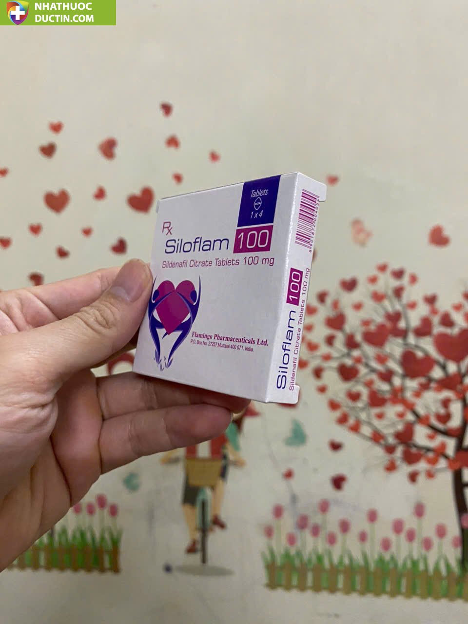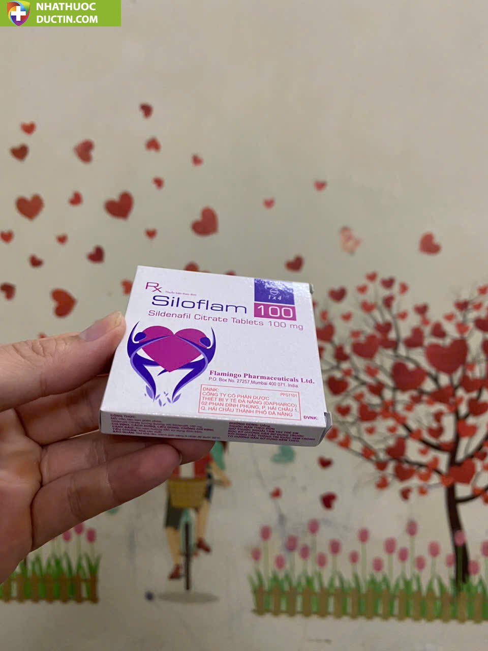 Các trường hợp suy thận nặng (độ thanh thải creatinin < 30 mL/phút) thì liều nên dùng là 25 mg vì độ thanh thải của sidenafil bị giảm ở những bệnh nhân này. Bệnh nhân suy gan Liều nên dùng là 25 mg vì độ thanh thải của sildenafil bị giảm ở những bệnh nhân này (ví dụ bệnh xơ gan). Dựa trên sự dung nạp và hiệu quả của thuốc, có thể tăng liều dần lên đến 50 mg đến 100 mg nếu cần thiết. Trẻ em Không dùng sildenafil cho trẻ em dưới 18 tuổi. Bệnh nhân đang dùng các thuốc khác Không nên dùng phối hợp ritonavir với sildenafil. Những bệnh nhân đang dùng các thuốc có tác dụng ức chế CYP3A4 thì liều khởi đầu nên dùng là 25 mg. Để hạn chế nguy cơ hạ huyết áp tư thế trong quá trình điều trị, bệnh nhân dùng thuốc chẹn alpha giao cảm nên được điều trị ổn định trước khi bắt đầu trị liệu với sildenafil. Liều khởi đầu nên dùng là 25mg. Lưu ý: Liều dùng trên chỉ mang tính chất tham khảo. Liều dùng cụ thể tùy thuộc vào thể trạng và mức độ diễn tiến của bệnh. Để có liều dùng phù hợp, bạn cần tham khảo ý kiến bác sĩ hoặc chuyên viên y tế. Làm gì khi dùng quá liều? Nghiên cứu trên những người tình nguyện dùng liều đơn 800 mg sildenafil cho thấy các tác dụng không mong muốn ở liều này tương tự như ở liều thấp, nhưng tần suất gặp và mức độ thì tăng lên. Liều 200 mg không làm tăng hiệu quả điều trị nhưng làm tăng tỷ lệ gặp phải các phản ứng phụ (đau đầu, đỏ bừng, chóng mặt, chứng khó tiêu, nghẹt mũi, thay đổi thị lực). Cách xử trí: Trong trường hợp quá liều, yêu cầu phải có các biện pháp hỗ trợ phù hợp. Thẩm phân thận không làm tăng độ thanh thải vì sildenafil gắn mạnh với protein huyết tương và không bị thải trừ qua nước tiểu. Làm gì khi quên 1 liều? Nếu bạn quên một liều thuốc, hãy dùng càng sớm càng tốt. Tuy nhiên, nếu gần với liều kế tiếp, hãy bỏ qua liều đã quên và dùng liều kế tiếp vào thời điểm như kế hoạch. Lưu ý rằng không nên dùng gấp đôi liều đã quy định. Tác dụng phụ Khi sử dụng thuốc SILOFLAM 100MG FLAMINGO 1X4 bạn có thể gặp các tác dụng không mong muốn (ADR). Rất thường gặp, ADR >1/10