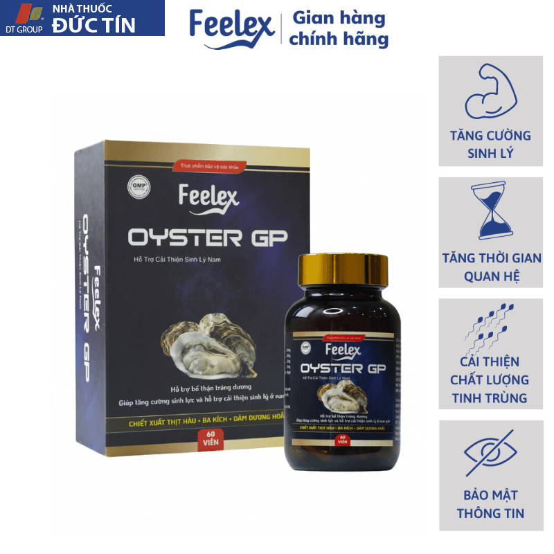 Tinh chất hàu biển cao cấp Feelex Oyster GP tăng cường sinh lý nam giới hộp 60 viên