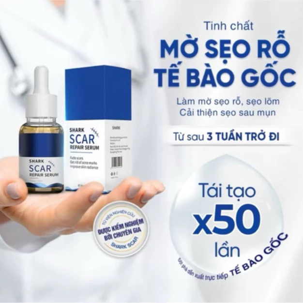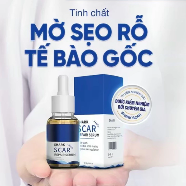 Đánh giá Tinh Chất Shark Scar, Serum Tế Bào Gốc Hỗ Trợ Giảm Sẹo Rỗ,Sẹo Lõm,Sẹo Thâm Mụn Shark Scar 30ml