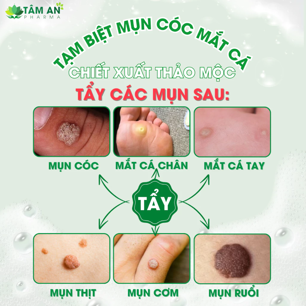 – Các loại Mụn cóc, Mụn cơm, Mụn mắt cá chân tay