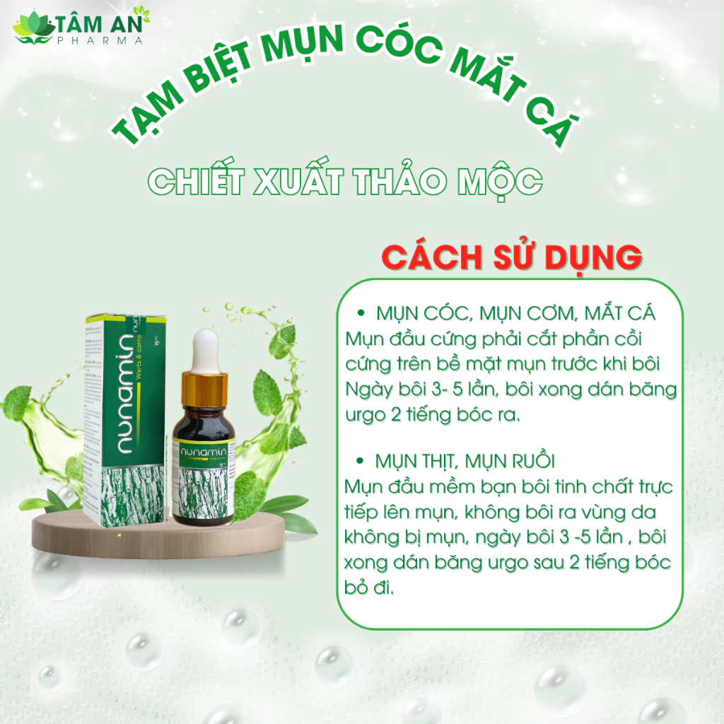 Đánh giá Tinh Chất Thảo Mộc NUNAMIN 15ML – Hỗ Trợ Xử Lý Mụn Cóc, Mụn Thịt, Mắt Cá Chân Tay