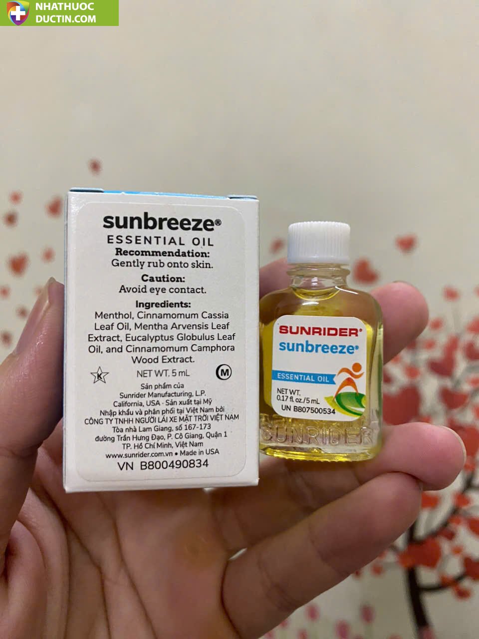 Tinh dầu SunBreeze được chiết xuất từ các thành phần tự nhiên như cây bạch đàn, hương bài, và các loại thảo dược quý giá khác, tạo nên một hỗn hợp tinh dầu độc đáo với hương thơm dễ chịu và tính năng thư giãn đặc biệt.