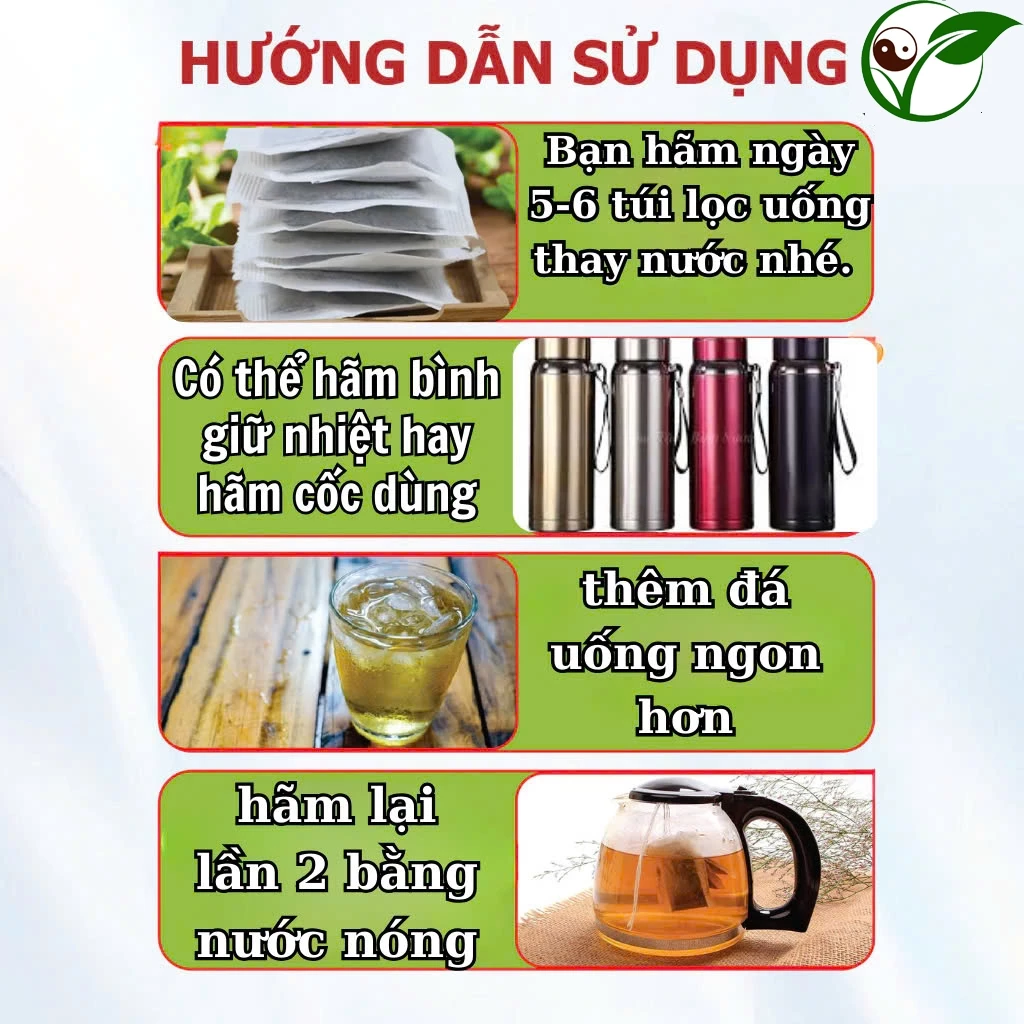 – Hãm trà lần 1: Hòa 5-6 túi lọc cùng với 700ml nước sôi, chờ 5 phút để thảo dược ngấm ra cốc rồi uống trực tiếp.