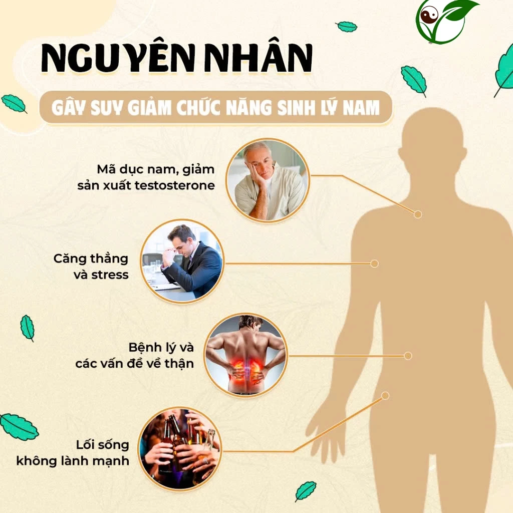 – Nam giới chức năng sinh lý suy giảm với các biểu hiện: Giảm ham muốn, xuất tin.h sớm, yếu sinh lý, di sinh, mộng ti.nh, râu, tóc bạc sớm.