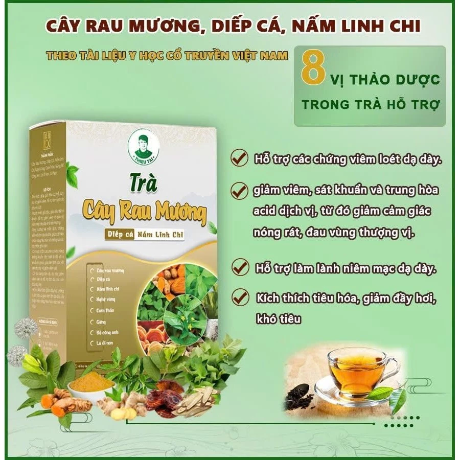 Trà cây rau mương chính hãng, dạng túi lọc (hộp 30-50 gói) là thảo mộc tự nhiên hỗ trợ điều trị dạ dày, viêm loét, và loại bỏ vi khuẩn HP