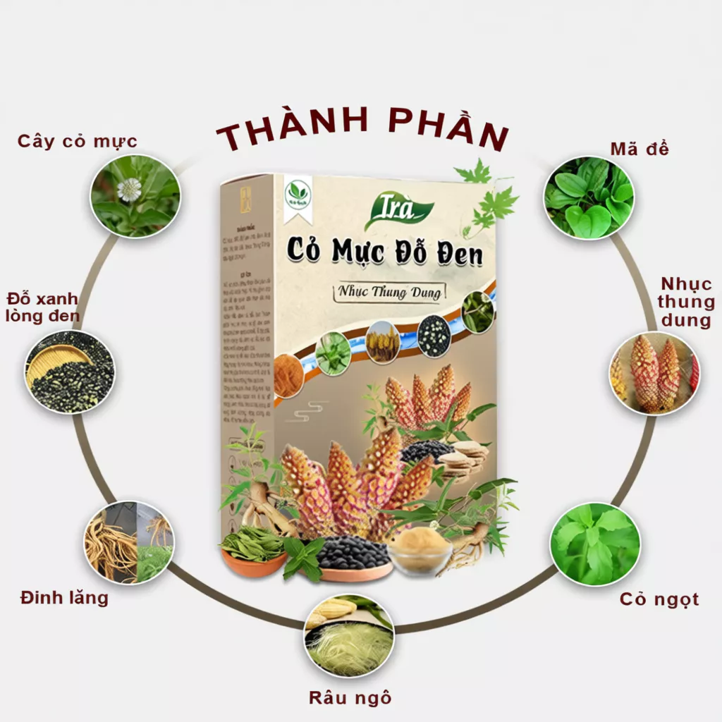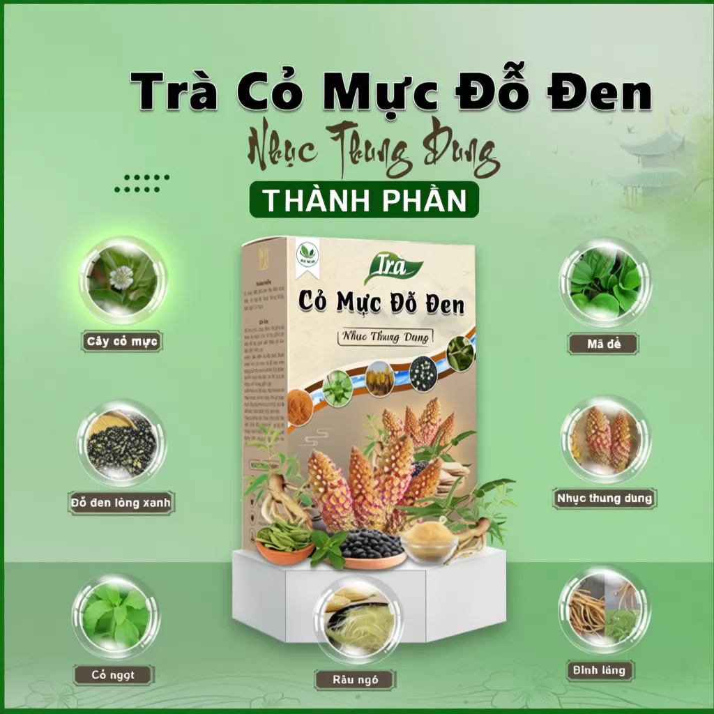 Trà cỏ mực đỗ đen nhục thung dung mang đến giải pháp tự nhiên giúp cải thiện chức năng thận, giảm tiểu bọt và tiểu đêm, đồng thời hỗ trợ làm sạch cơ thể, tăng cường sức khỏe tổng thể.