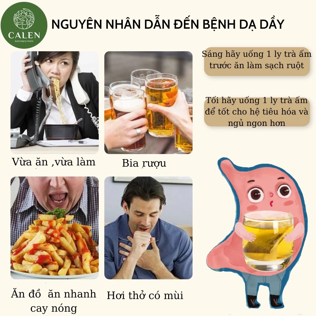 Trà dạ dày đại tràng, chống trào ngược, đầy hơi, ợ chua, ức chế vi khuẩn HP – CALEN NATURE FARM