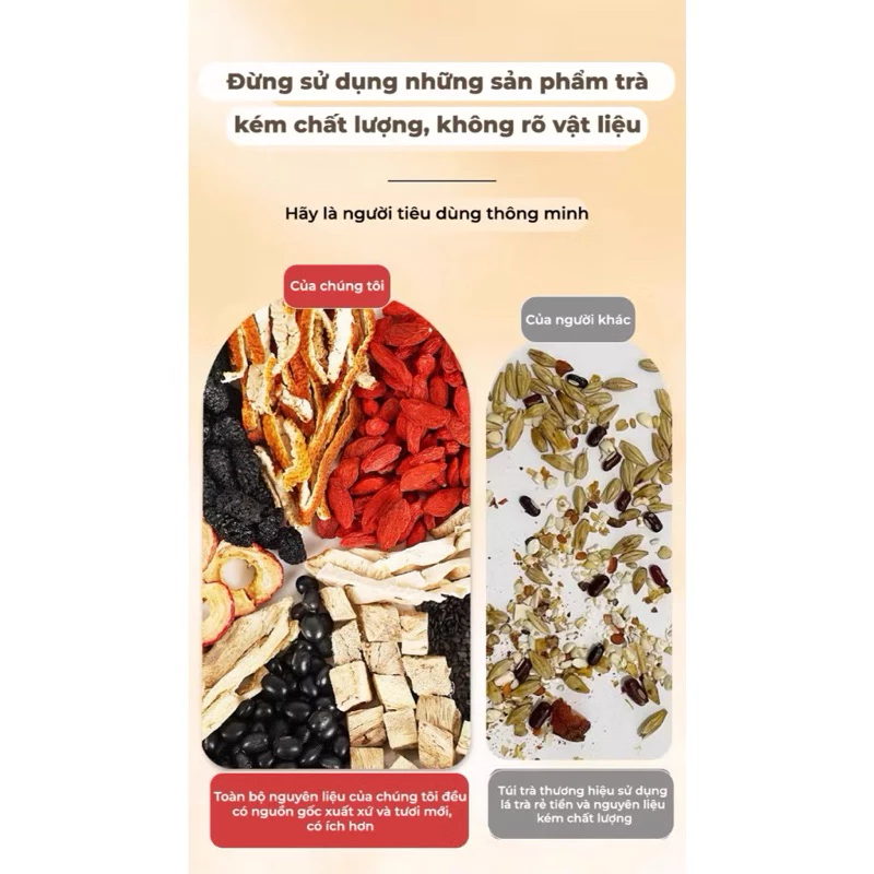 ✔ Dâu tằm, đậu đen, mè đen: Hỗ trợ tóc trông đậm màu, nuôi dưỡng từ bên trong.