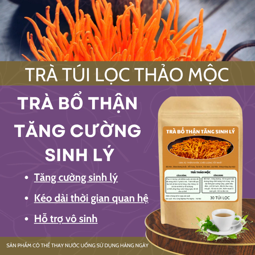 Trà Đông Trùng Hạ Thảo , trà bổ thận tăng cường sinh lý dứt điểm tình trạng xuất tinh sớm rối loạn cương dương