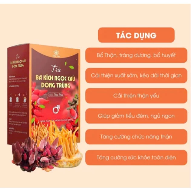 Đánh giá Trà đông trùng ngọc cẩu ba kích, tỉnh táo, mát gan, đinh lăng, dây thìa canh, cỏ ngọt, sâm cau Hộp 60 gói