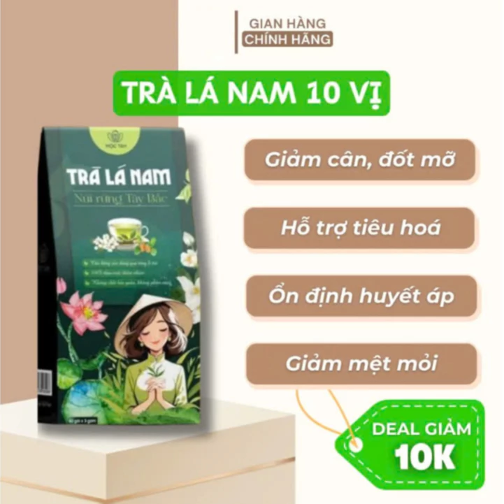 Trà Lá Nam 10 Vị là sự kết hợp của những vị thuốc quý từ núi rừng Việt Nam, hỗ trợ giảm cân an toàn, mát gan, làm đẹp da và thanh lọc cơ thể từ sâu bên trong.