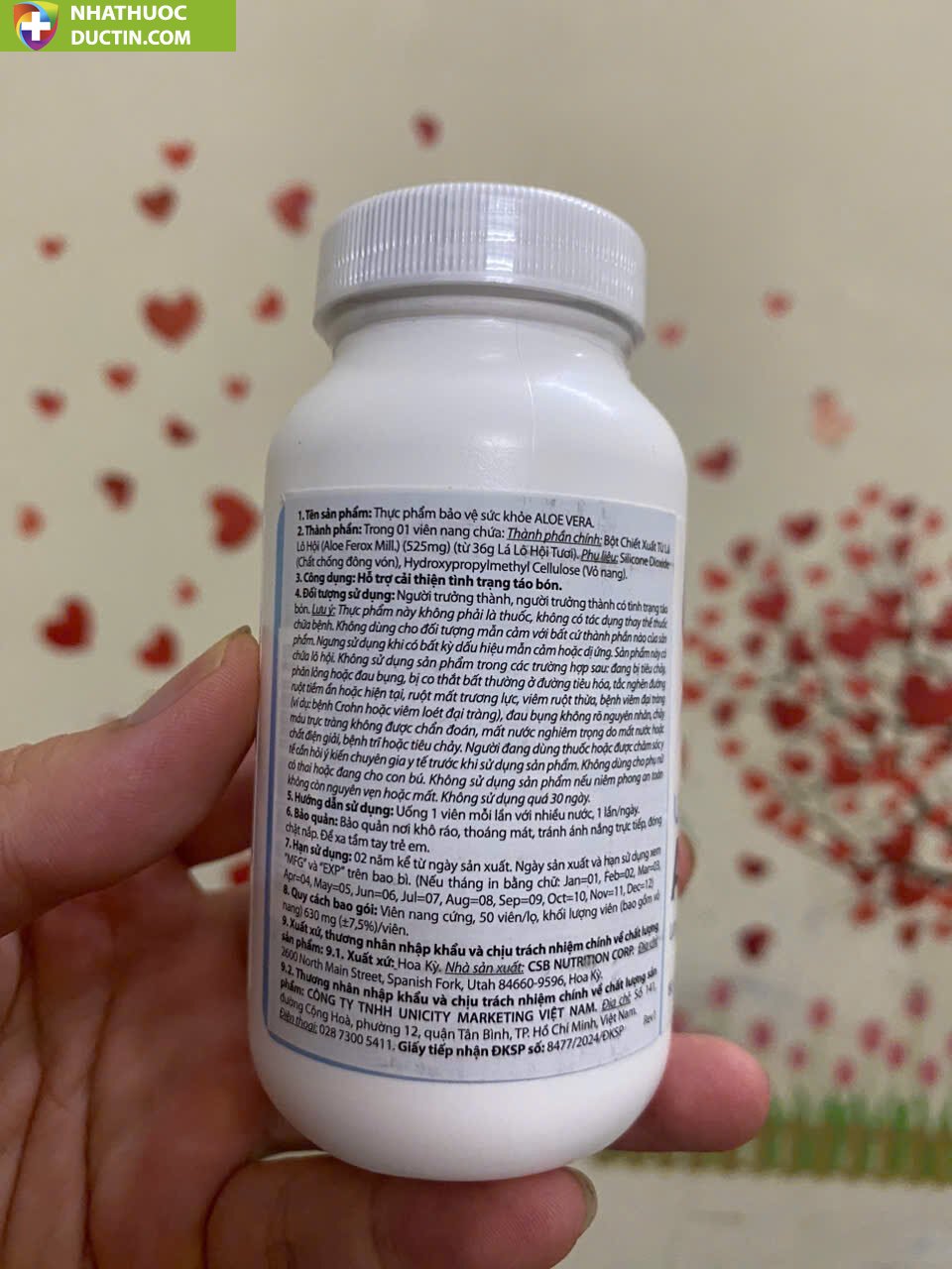 Thực phẩm bổ sung chế độ ăn uống Unicity Aloe Vera hỗ trợ sức khỏe tiêu hóa – 50 viên nang