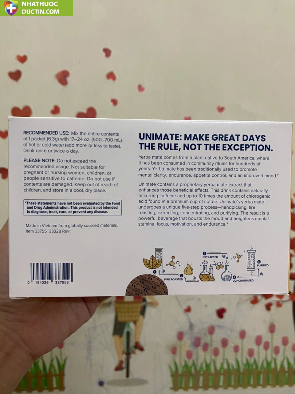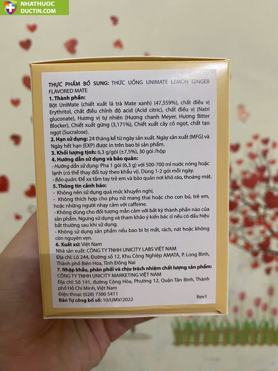 Trà Unimate được sản xuất bởi công ty Unicity, một thương hiệu uy tín với nhiều năm kinh nghiệm trong ngành thực phẩm chức năng, đảm bảo an toàn và chất lượng sản phẩm.