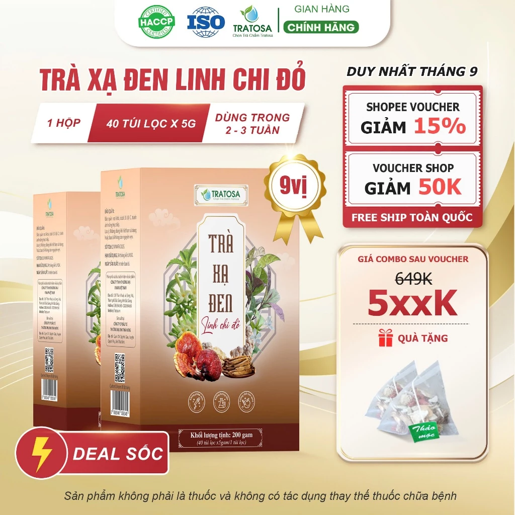 Trà xạ đen linh chi đỏ TRATOSA 9 vị thảo dược 40 túi lọc 5g hoàn toàn từ thiên nhiên