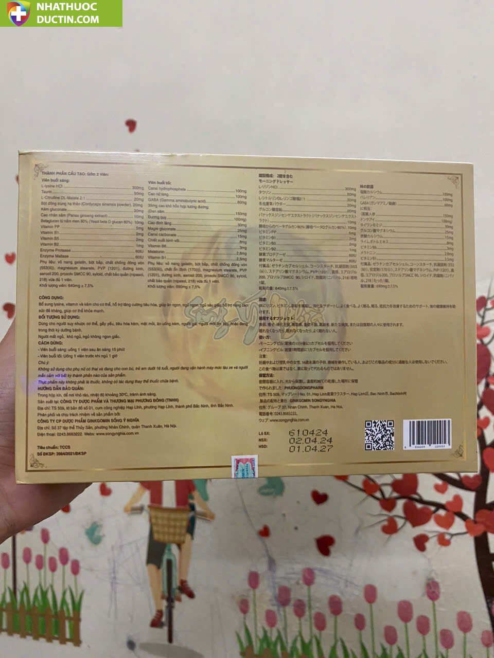 Sản phẩm được sản xuất dưới dạng viên nang, tiện lợi khi sử dụng và giúp cung cấp các chất dinh dưỡng cần thiết cho cơ thể một cách nhanh chóng. Sản phẩm này thích hợp cho người trên 16 tuổi và đặc biệt là những người có vấn đề về tiêu hóa, mệt mỏi, khó ngủ, ngủ không ngon giấc, ăn uống kém hoặc cần bổ sung dưỡng chất tăng cường sức khỏe và sức đề kháng của cơ thể.