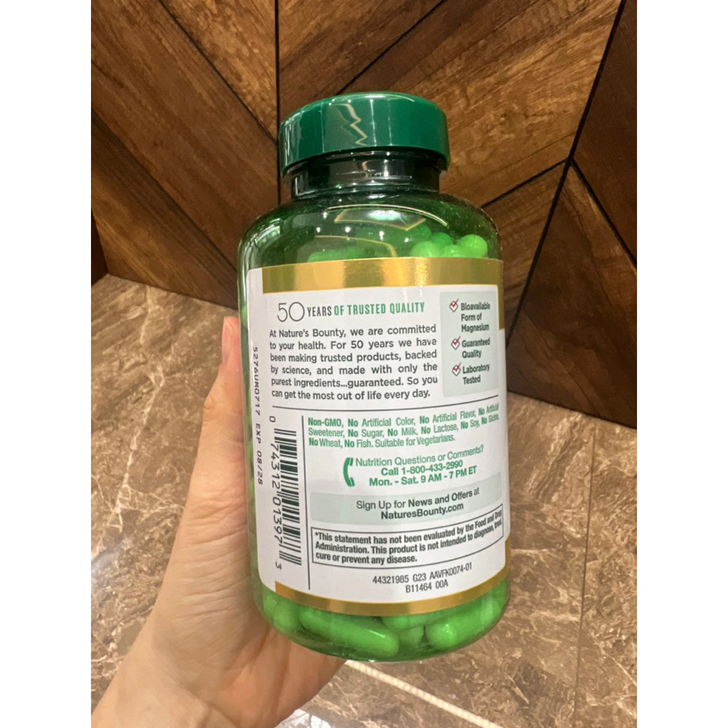 Date 08.2028. Viên bổ sung Magnesium Glycinate 240mg dễ hấp thụ.