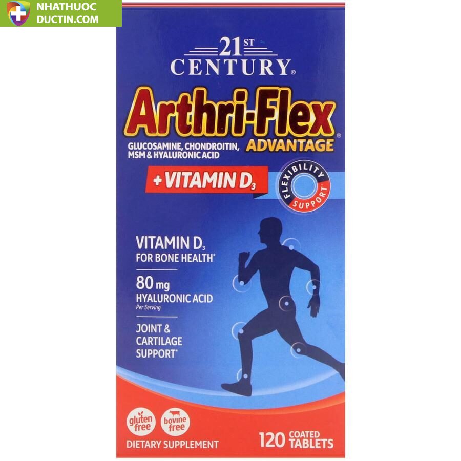 Viên uống Arthri Flex với thành phần bổ sung Vitamin D3 giúp cơ thể hấp thụ canxi, dưỡng chất tốt hơn, hỗ trợ cải thiện tốt sức khỏe xương khớp. Sản phẩm sản xuất tại Mỹ, được đóng lọ 120 viên.