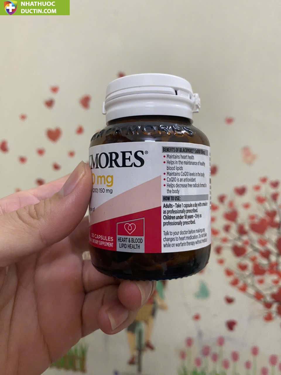 Coenzyme Q10 được tìm thấy tập trung tự nhiên trong cơ tim, là một trong những chất đóng vai trò thiết yếu giúp tăng cường sức khỏe tim mạch. Việc bổ sung Blackmores CoQ10 150mg giúp duy trì trái tim khỏe mạnh, tăng dẫn máu đến cơ tim, phòng ngừa và giảm các nguy cơ mắc các bệnh về tim.