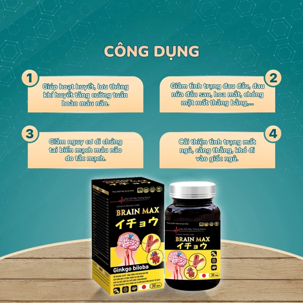 Viên Uống Bổ Não Brain Max Cải Thiện Tình Trạng Đau Đầu Chóng Mặt Mất Ngủ Do Thiếu Máu Não