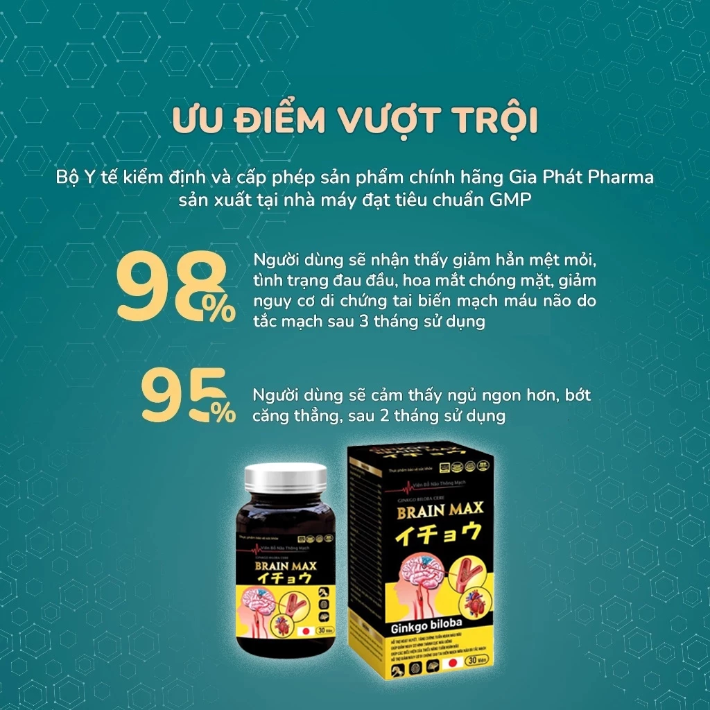 – Hoạt huyết dưỡng não hỗ trợ giảm đau đầu; hoa mắt; chóng mặt; rối loạn tiền đình; ù tai; hồi hộp; lo lắng