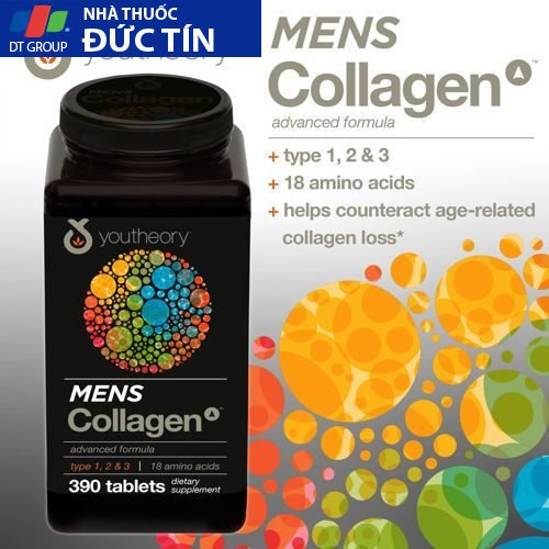 Viên uống bổ sung collagen nam mỹ Youtheory Collagen Type 1,2,3 Healthy Care dành cho nam 390v