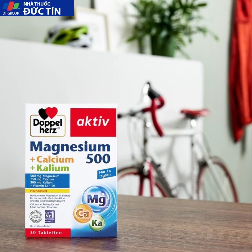 – Doppelherz Magiê 500 + Canxi + Kali cung cấp magie liều cao kết hợp với hai khoáng chất canxi và kali cũng như vitamin D3 và B6.