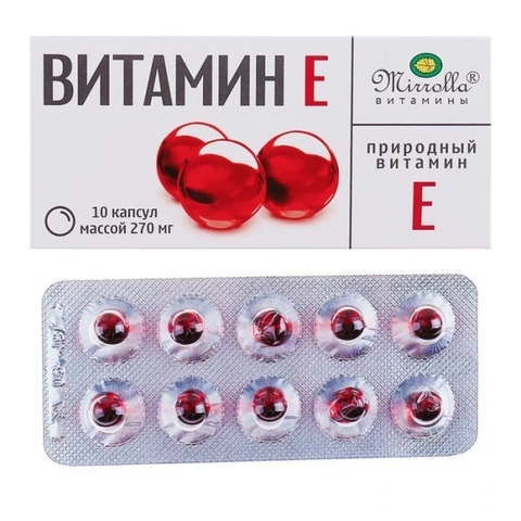 Viên uống bổ sung Vitamin E Đỏ Mirrolla 270mg – Nga ( vỉ 20 viên)