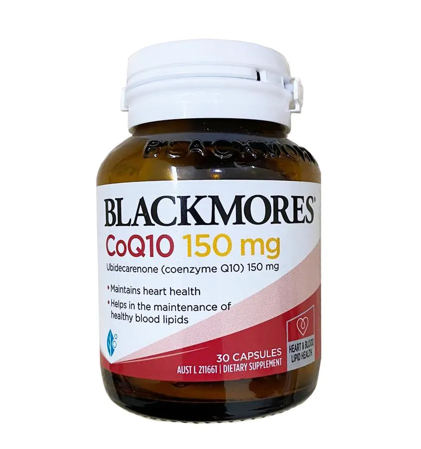 CoQ10 Blackmores 150mg là viên uống bổ sung Ubidecarenone (Coenzyme Q10), giúp hỗ trợ tăng ường sức khỏe và giúp cải thiện tốt sức khỏe tim mạch.