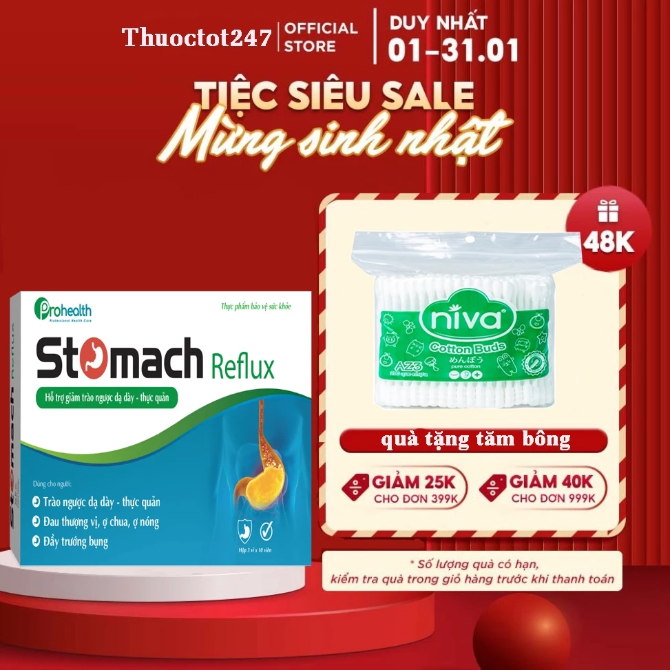 Đánh giá Viên uống dạ dày STOMACH REFLUX, giảm trào ngược dạ dày, thực quản, đau thượng vị, ợ hơi, đầy trướng bụng
