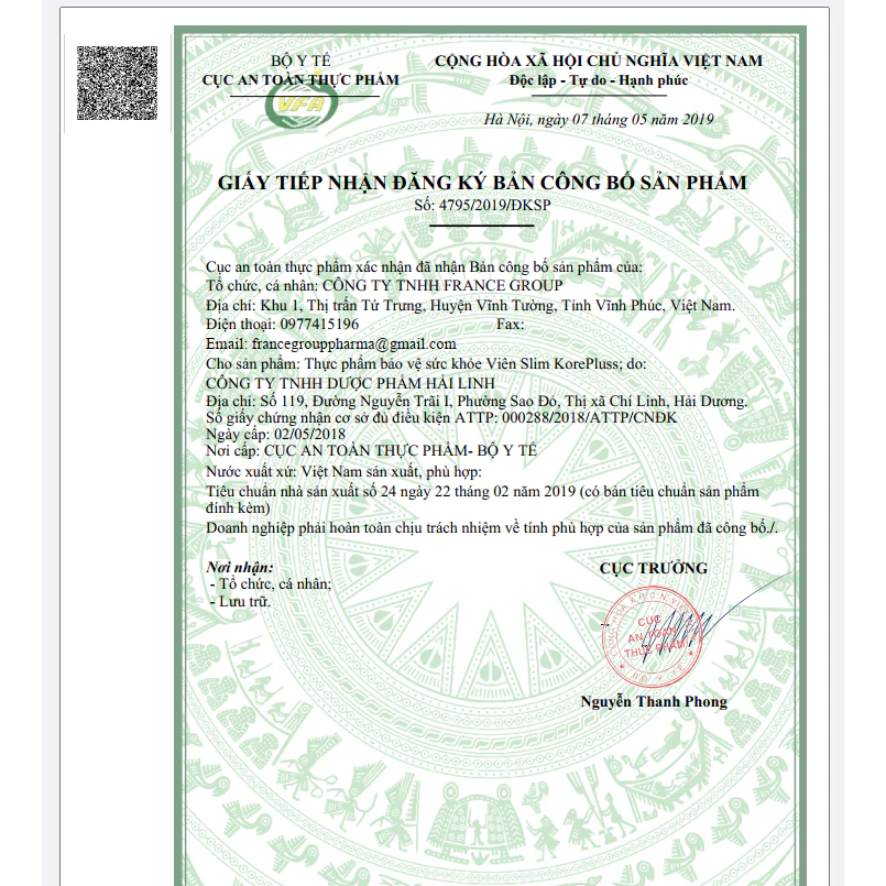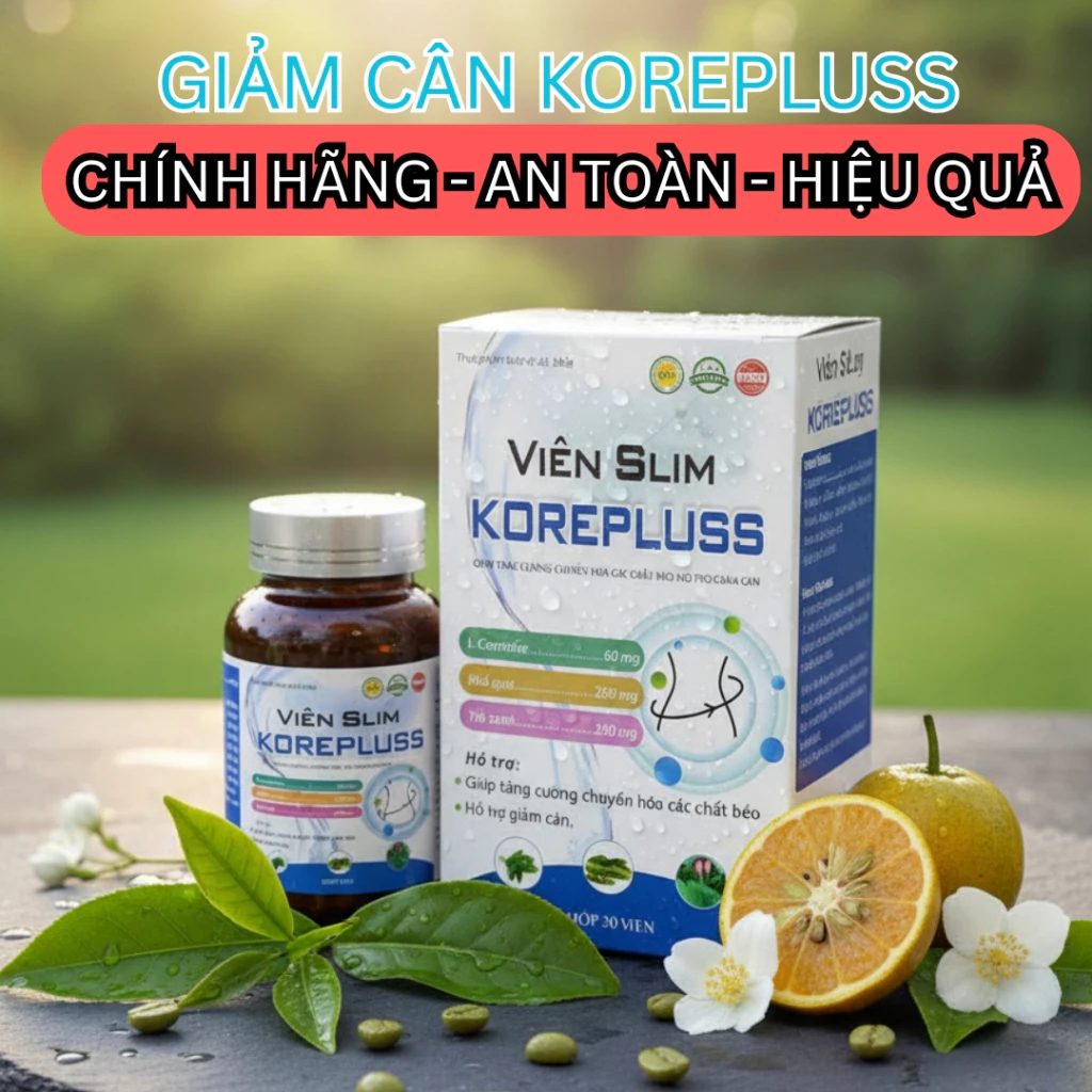 – Viên uống Slim KorePluss là giải pháp hỗ trợ giảm cân hiệu quả và an toàn được Bộ Y Tế chứng nhận. Sản phẩm ra đời với sứ mệnh mang lại vóc dáng thon gọn mà vẫn bảo vệ sức khỏe người dùng: