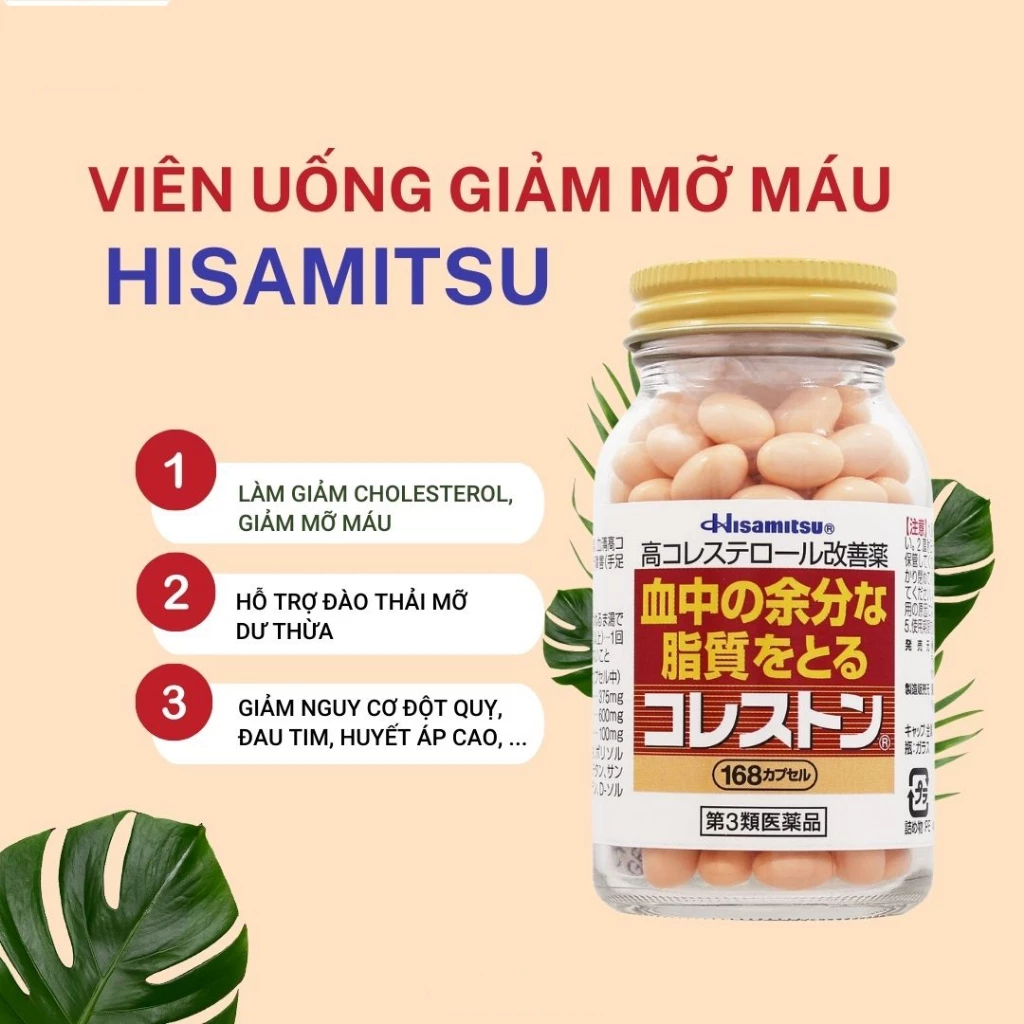 Viên uống giảm mỡ trong máu Hisamitsu được sử dụng như một dạng thực phẩm chức năng hữu hiệu, giúp điều chỉnh và làm giảm lượng Cholesterol cần thiết cho cơ thể và cực kì tốt đối với những người đang mắc phải căn bệnh này.