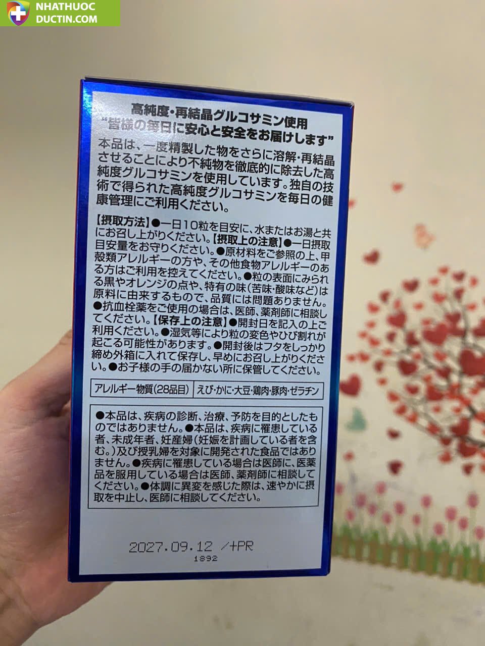 - Uống 8~10 viên/ngày (chứa 1500mg glucosamine/ngày), uống với nước lọc hoặc nước ấm đều được.