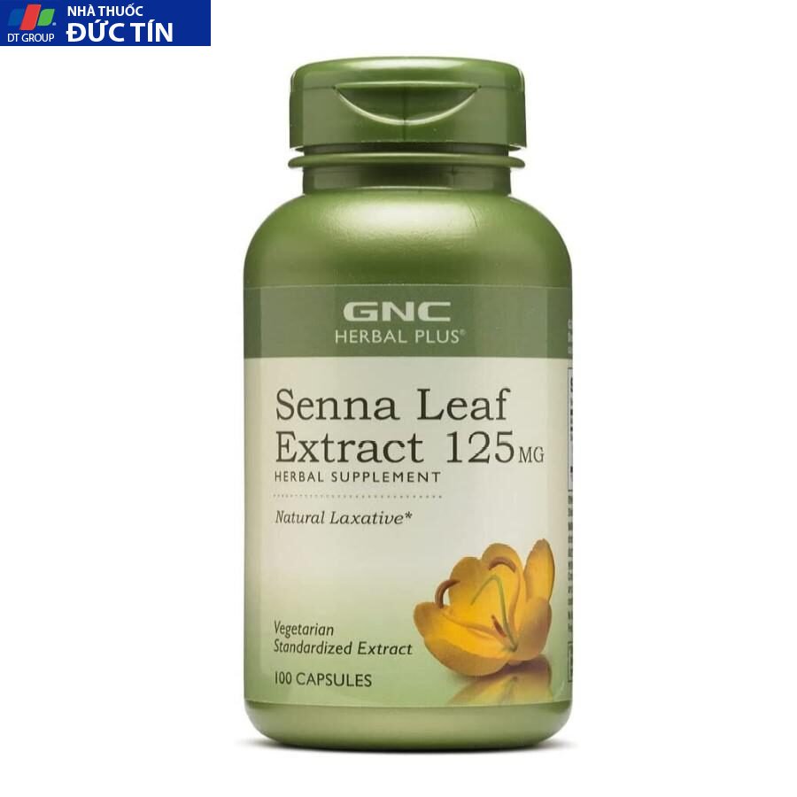 - Sản phẩm viên uống GNC Herbal Plus Senna Leaf Extract 125mg hỗ trợ làm nhẹ người, thoải mái.