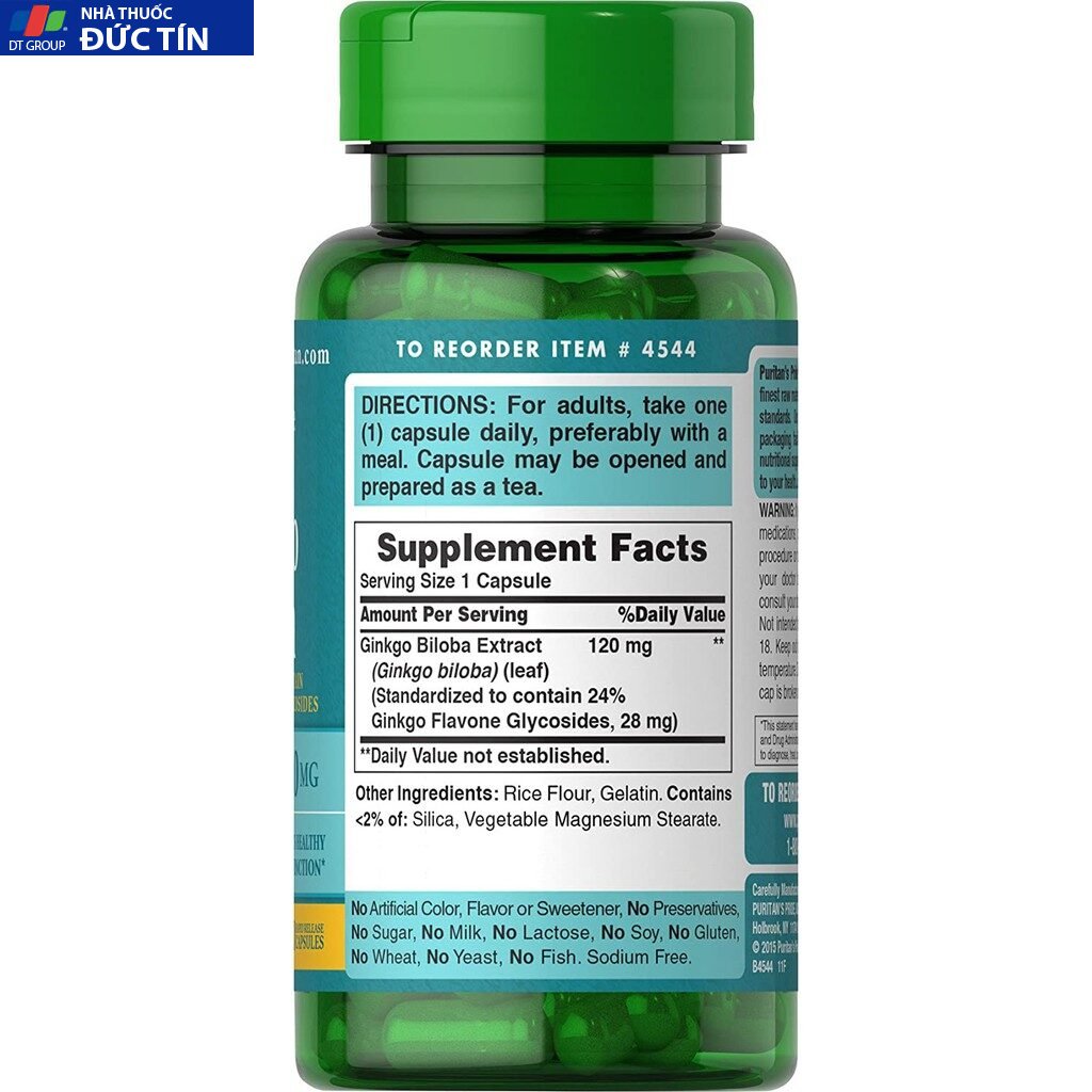 Đánh giá Viên Uống Hỗ Trợ Tuần Hoàn Não Bộ Puritans pride Ginkgo Biloba 120mg 200 Viên