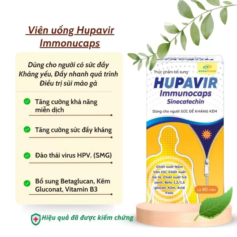 Đánh giá Viên uống Hupavir Immunocaps hỗ trợ đào thải HPV, sùi mào gà , hỗ trợ tăng cường đề kháng cho cả nam và nữ lọ 60 viên