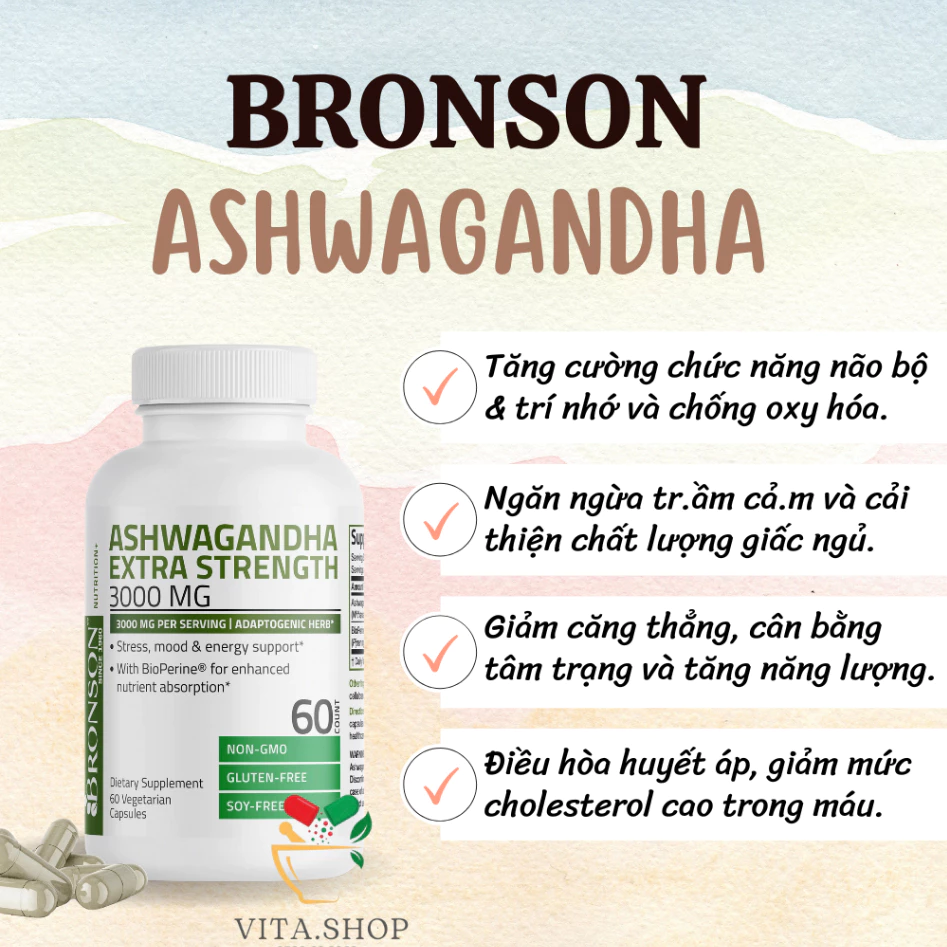 #VitaShop6868 #Bronson #Bronson_Ashwagandha #Ashwagandha #Viên_Uống_Nhân_Sâm #Nhân_Sâm #Nhân_Sâm_Ấn_Độ #Viên_Uống_Nhân_Sâm_Ấn_Độ #giamcangthang #giamloau #giamstress #ngungon #naobo #trinho #chongoxyhoa #caithientamtrang #huyetap #timmach #sinhly #ngannguatramcam #tramcam #cobap #nhanthuc #taptrung