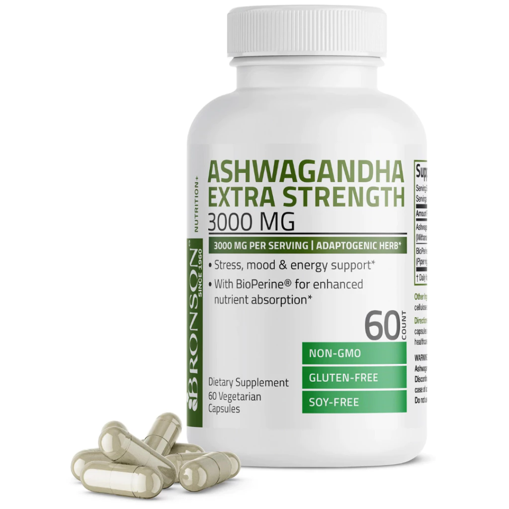 Viên Uống Nhân Sâm Giúp Giảm Căng Thẳng, Tăng Năng Lượng Bronson Ashwagandha 3000mg 60 viên
