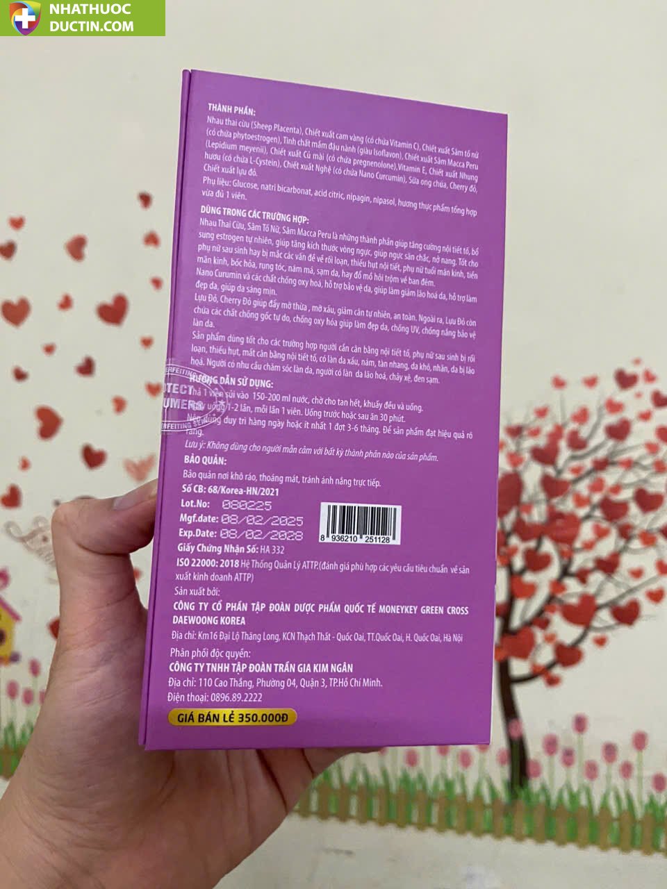 • 🏭 Sản xuất: CÔNG TY CP TẬP ĐOÀN DƯỢC PHẨM QUỐC TẾ MONEYKEY GREEN CROSS DAEWOONG KOREA