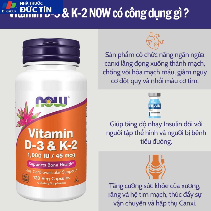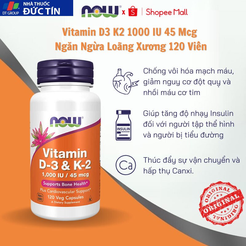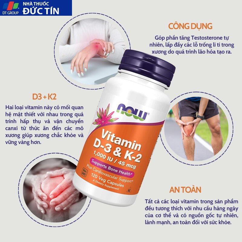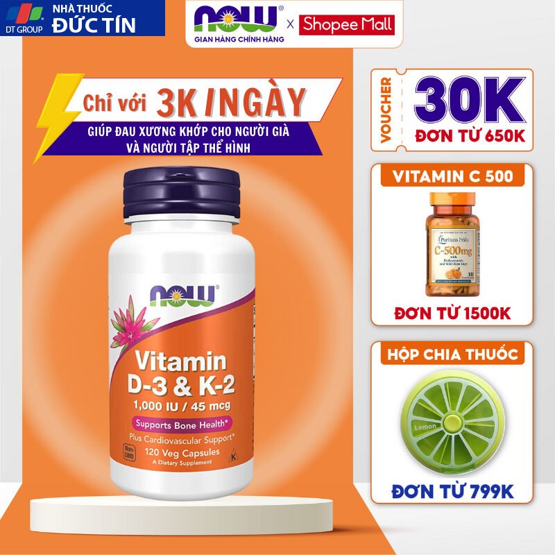 Đánh giá Viên uống Now Vitamin D3 K2 1000 IU 45 mcg của Mỹ, hỗ trợ cho xương chắc khỏe 120 viên