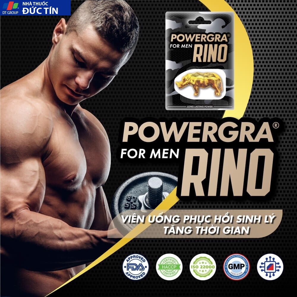 Viên uống phục hồi và tăng cường sinh lý, kéo dài thời gian Powergra For Men Rino là sản phẩm được nhiều người săn đón ngay từ những ngày đầu ra mắt. Bởi chúng sở hữu vô vàn tác dụng khiến cánh mày râu đê mê.
