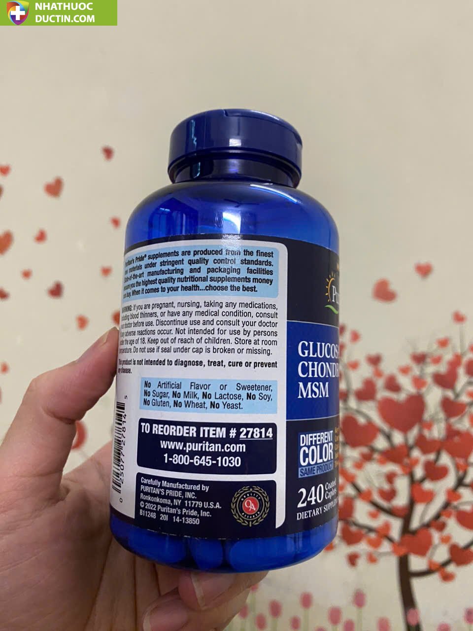 Viên uống Puritan’s Pride Glucosamine là thực phẩm chức năng hỗ trợ sức khỏe xương khớp, nổi tiếng với sự kết hợp Glucosamine, Chondroitin, và MSM (trong các phiên bản mạnh hơn), giúp tái tạo sụn khớp, bôi trơn khớp, giảm viêm, đau do thoái hóa khớp, viêm khớp và loãng xương, phù hợp cho người lớn tuổi, người lao động nặng, hoặc người chơi thể thao, giúp khớp vận động linh hoạt. Sản phẩm có nhiều phiên bản khác nhau (Double Strength, Triple Strength) với liều lượng và công dụng đa dạng, có nguồn gốc từ Mỹ.