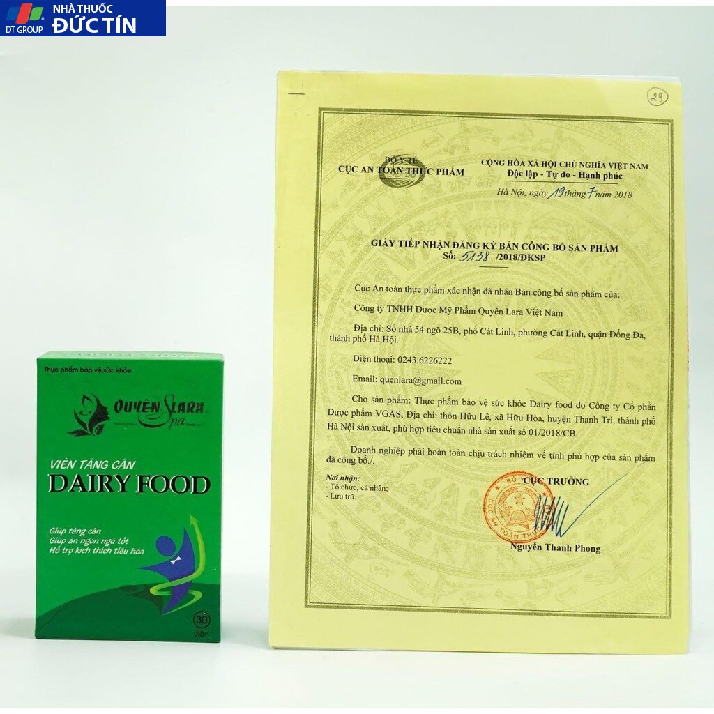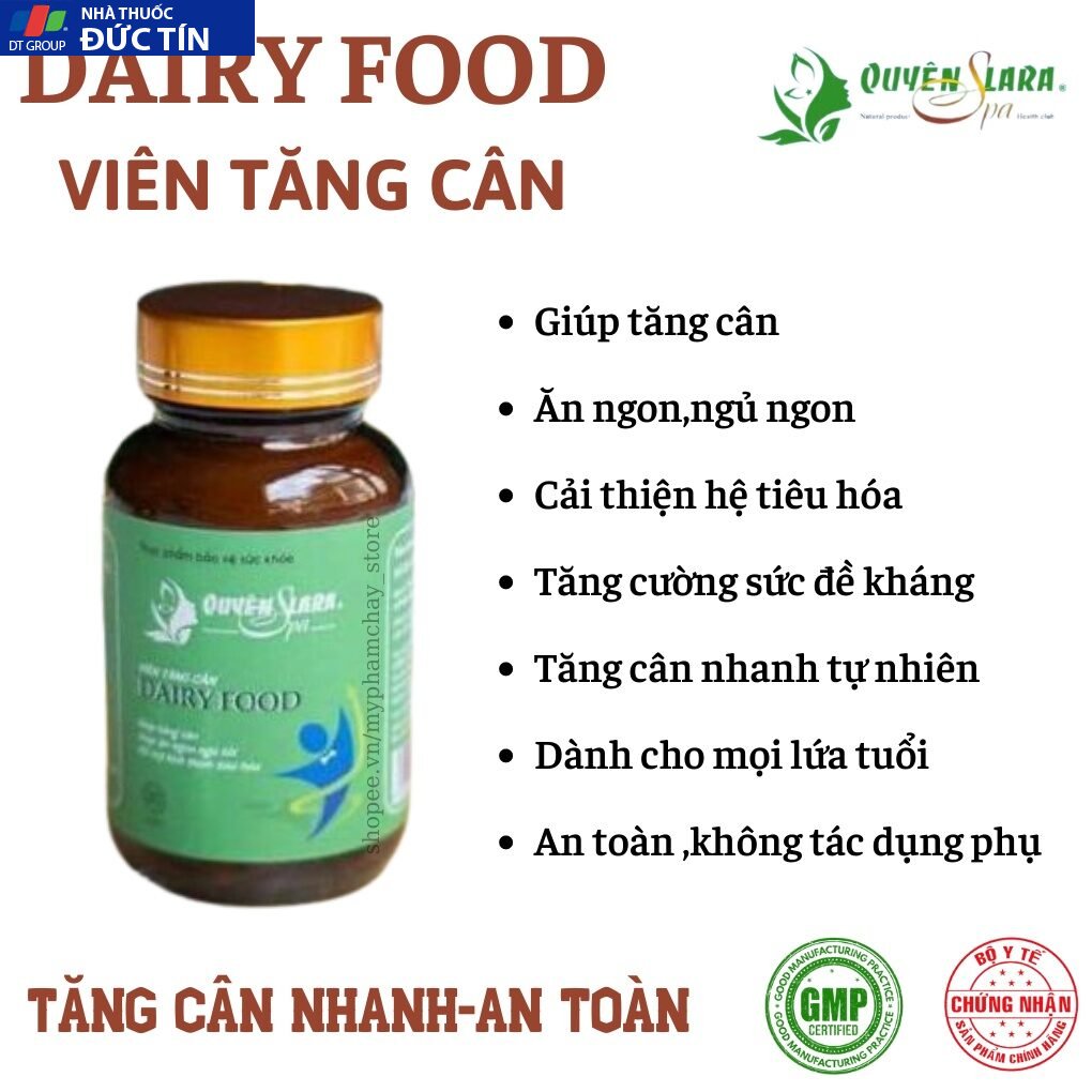 Đánh giá Viên Uống Tăng Cân DAIRY FOOD Quyên Lara,An Toàn,Hiệu Quả,Không Tác Dụng Phụ,Tăng Từ 1-3kg Sau Một Liệu Trình 30V/Hộp