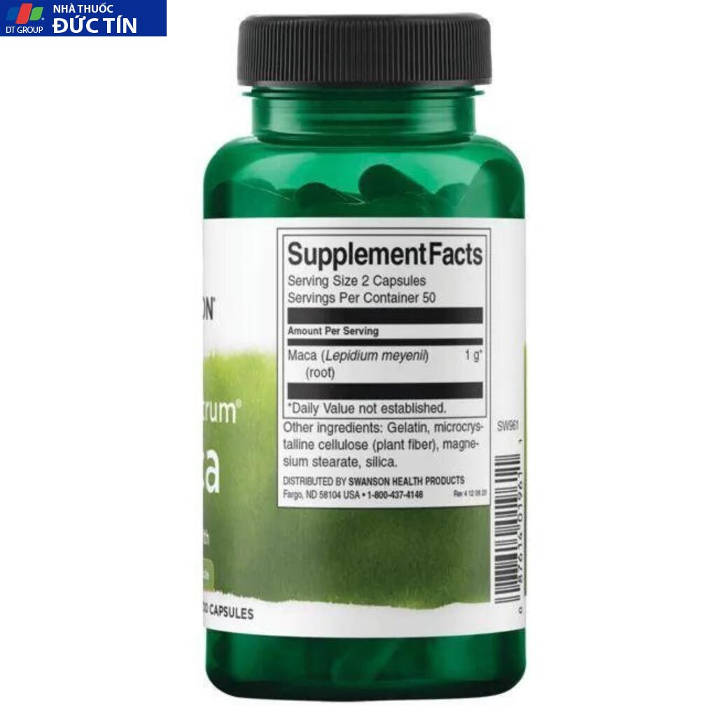 Đánh giá Viên uống tăng cường sinh lý Full Spectrum Maca 500mg 100 viên Swanson của Mỹ