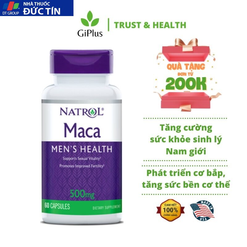 Viên uống Tăng Cường Sinh Lý Nam Giới Natrol Maca Men’s Health 500mg là sản phẩm thực phẩm chức năng đến từ thương hiệu Natrol (Mỹ).