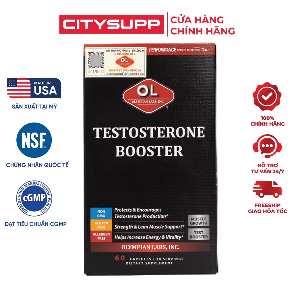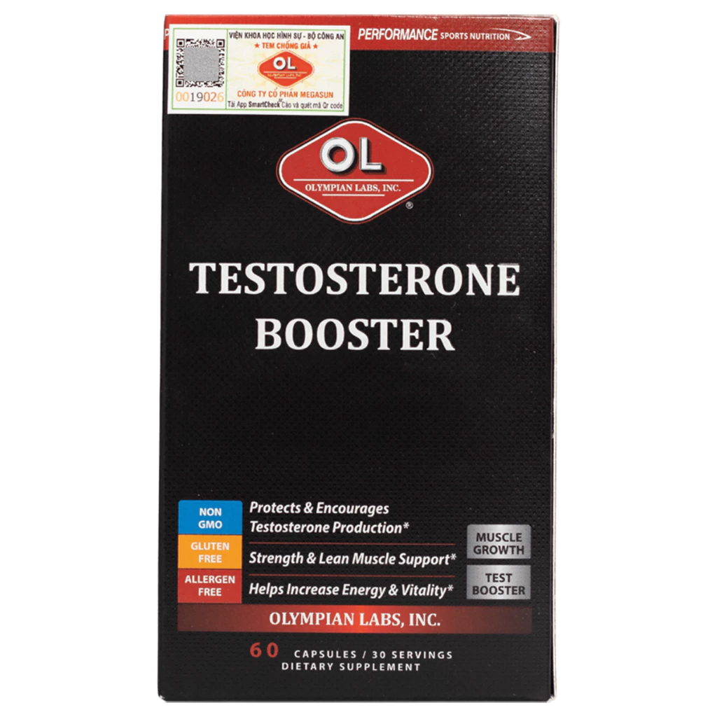 – Olympian Labs Testosterone Booster là sản phẩm tăng cường sức khỏe nam giới đến từ Mỹ, giúp hỗ trợ và bảo vệ quá trình sản xuất testosterone đồng thời cân bằng nồng độ estrogen. Sản phẩm cũng giúp tăng cường năng lượng và sức sống