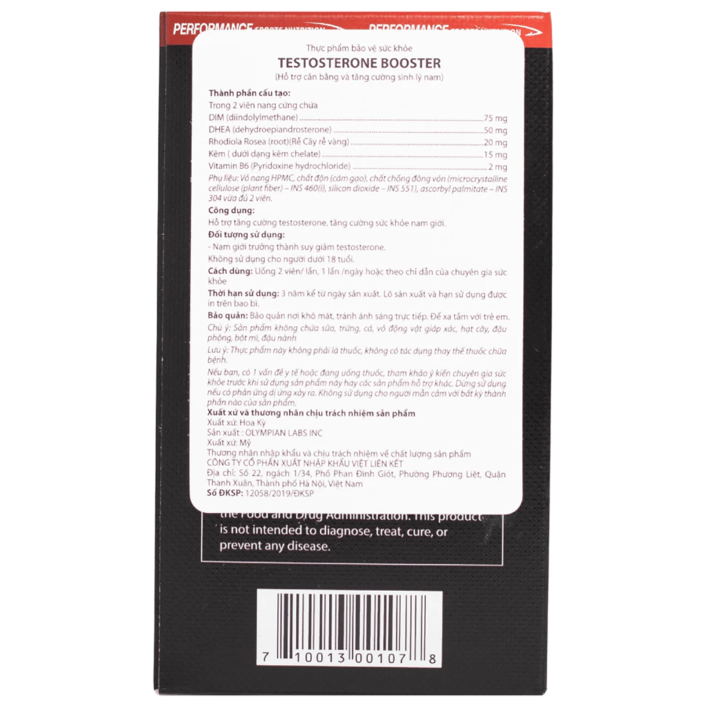 Tên sản phẩm: Thực phẩm bảo vệ sức khỏe Testosterone Booster do Olympian Labs