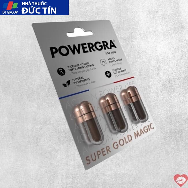 Viên uống tăng kích thước, hỗ kéo dài thời gian Powergra For Men (Super Gold Magic) được bào chế dạng viên nén nên rất tiện lợi trong suốt quá trình sử dụng. Đặc biệt, chỉ cần uống 1 viên, hiệu quả có thể kéo dài lên tới 72 giờ.