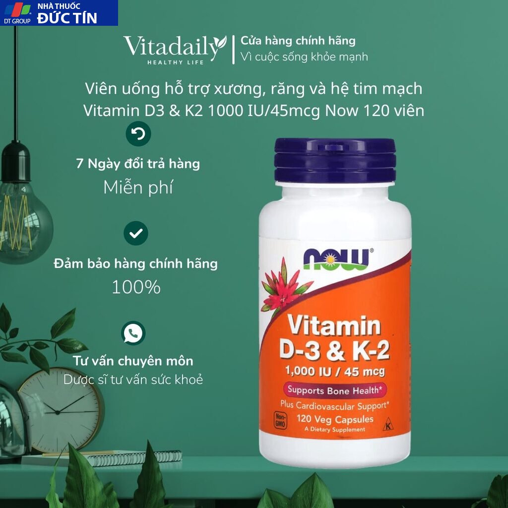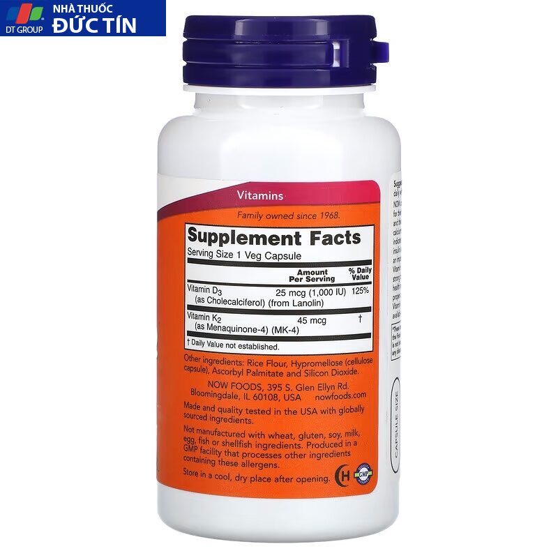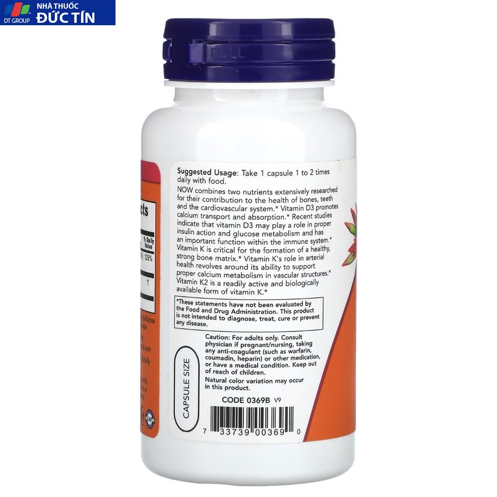 – NOW kết hợp hai chất dinh dưỡng được nghiên cứu rộng rãi là Vitamin D3 và Vitamin K2 để đóng góp cho sức khỏe của xương, răng và hệ tim mạch.